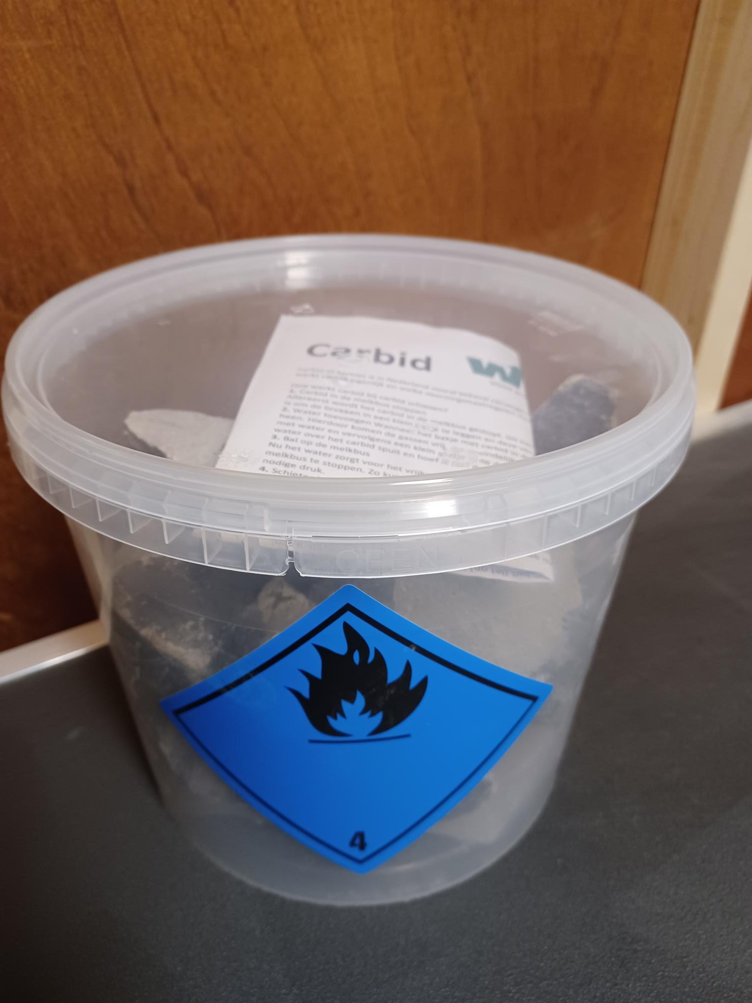 Natuurlijk ontstaat die harde knal niet vanzelf. Dit is afhankelijk van de juiste verhoudingen. Je zult er dus zelf even mee moeten ‘spelen’ om de juiste hoeveelheid water af te stemmen op de hoeveelheid carbid die je gebruikt. Daarnaast is ook de wachttijd tot ontsteking van het carbid erg belangrijk. Dit maakt carbidschieten tot een echte sport. Carbid is bij ons verpakt in luchtdichte emmer met gebruiksaanwijzing en bij 5 kg met gevarensticker, zoals ILT inspectie leefomgeving en transport voorschrijft.