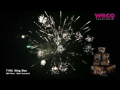 Beleef je oudejaarsnacht als een King, met dit King Size vuurwerkpakket van WECO Feuerwerk. In het pakket zitten vijf dikke siervuurwerkpotten. Een cake met 19 schoten in 20mm kaliber, een cake met 16 schoten in 20mm kaliber, een cake met 20 schoten in 20mm kaliber, een cake met 19 schoten in het maximale 30mm kaliber en een cake met 20 schoten in 25mm kaliber.