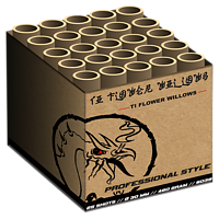 Ti Flower Willows. Dit is een siercake met de maximale tubesize van 30mm. Hiermee schiet deze cake geweldig mooie gouden brocade crowns, brocade palm en ti flower willows af. Een geweldige combinatie!